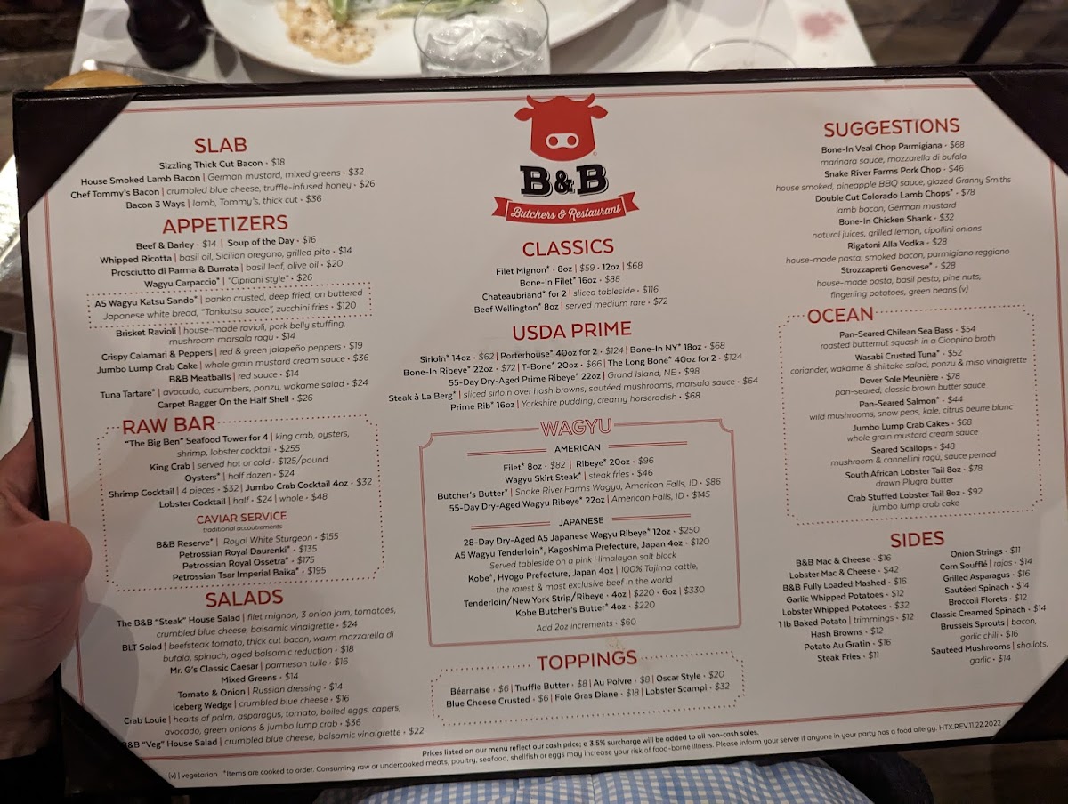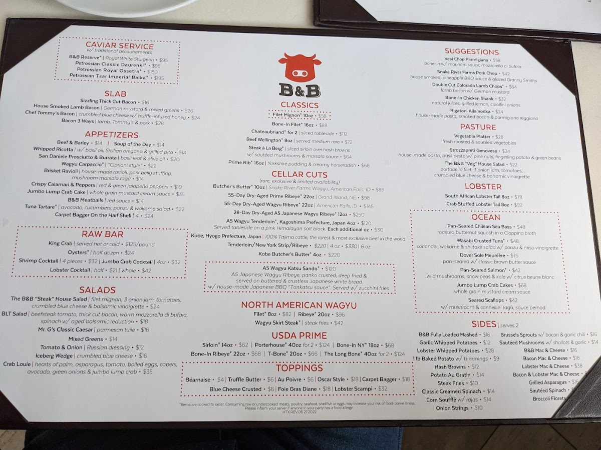 B&B Butchers & Restaurant is a culinary gem located at 1814 Washington Ave, Houston, TX, known for its exceptional blend of fine dining and relaxed atmosphere. The menu is a meat lover’s paradise, featuring expertly prepared dishes like the Beef Wellington and dry-aged ribeye, celebrated for their rich flavors and perfect execution. For seafood enthusiasts, the King Crab and a half dozen freshly shucked oysters offer a taste of the ocean that’s hard to resist.
